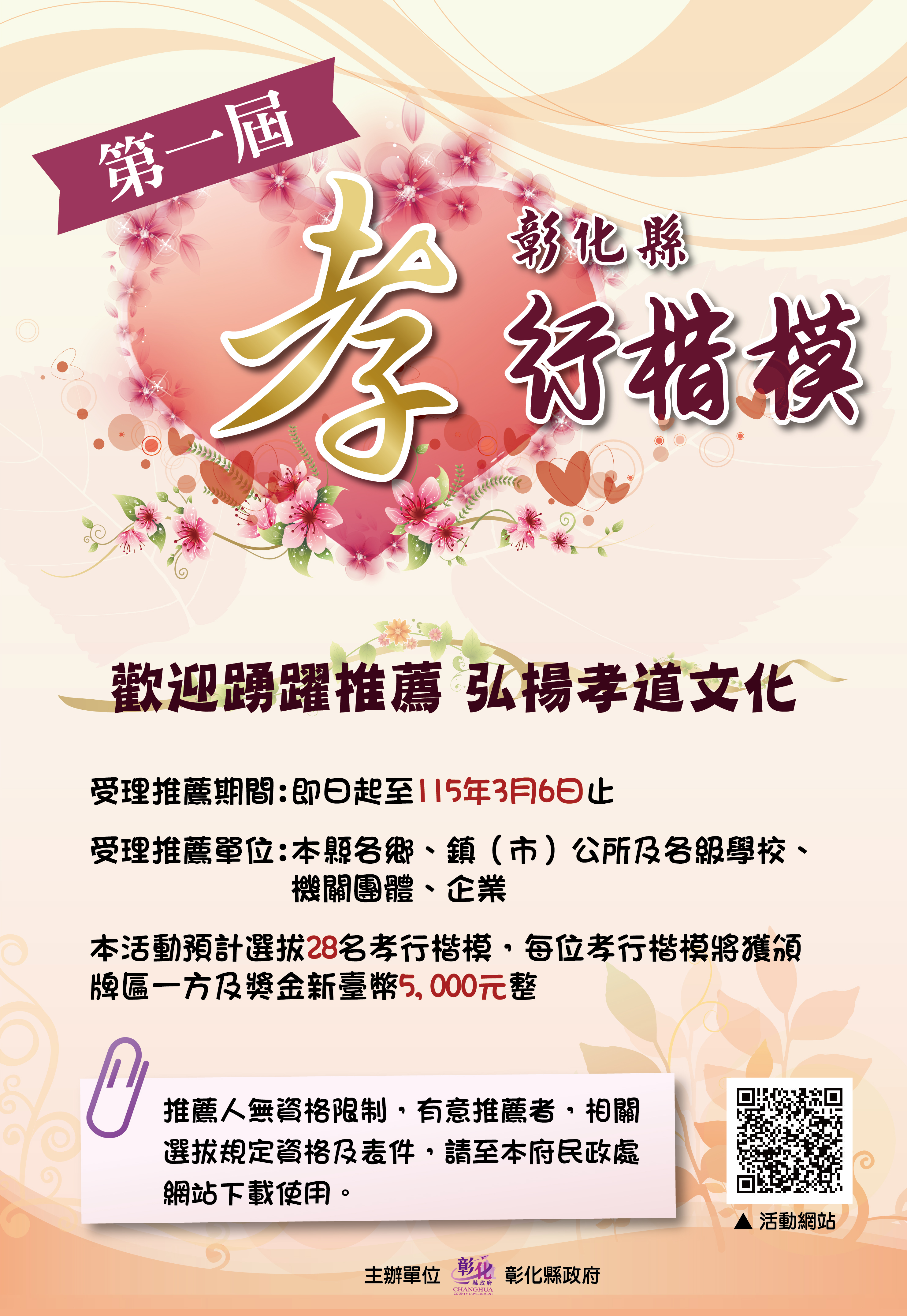 115年本縣孝行楷模選拔及遴薦參加全國孝行獎來囉