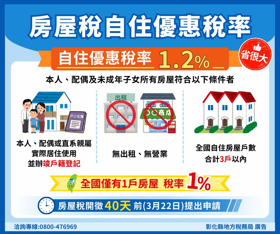 🥳享房屋稅自住優惠稅率1.2%