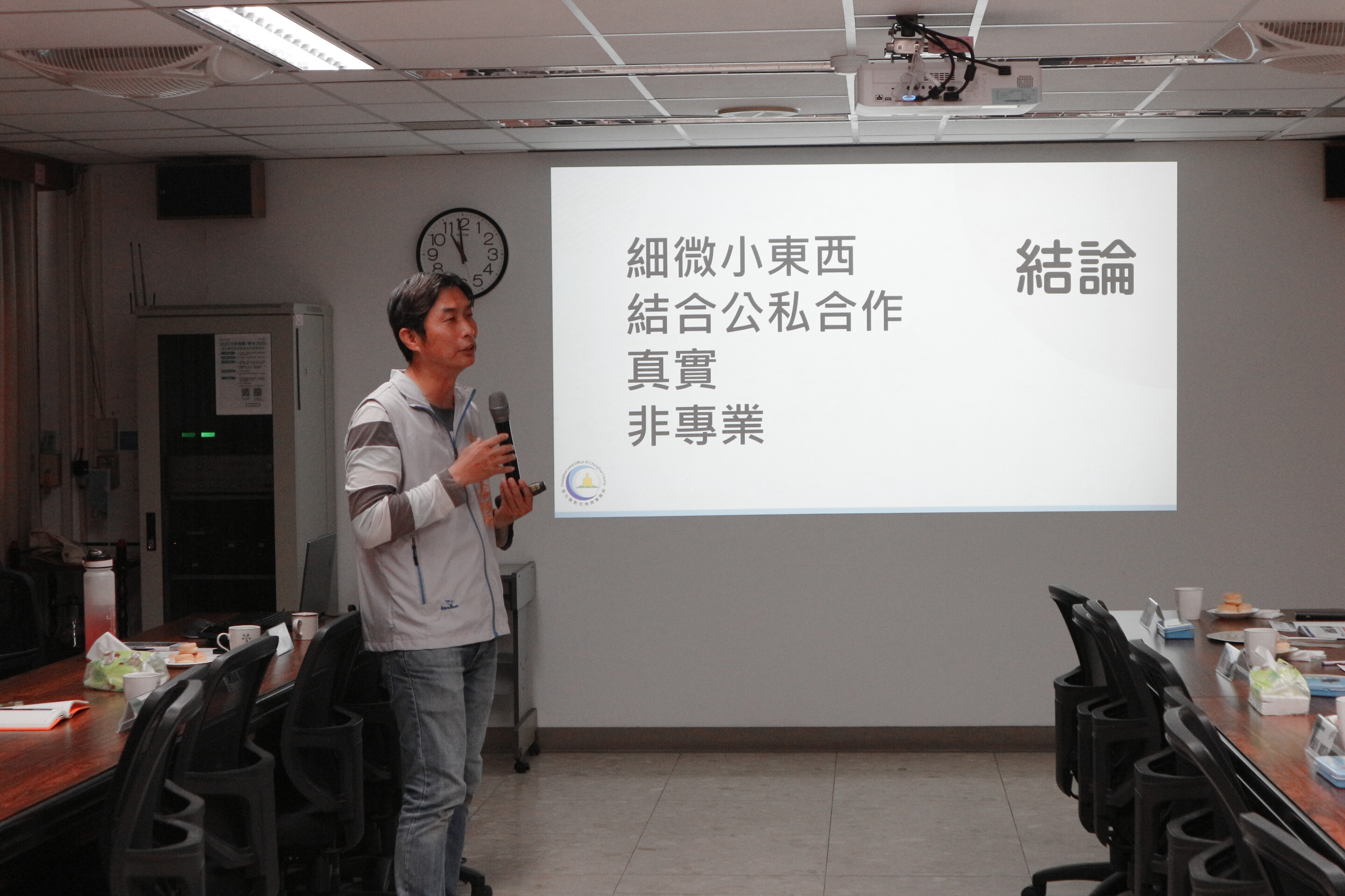 本次由本所魏測量員擔綱分享,他感性表示,參獎內容並非刻意產出,而是自民國108年起,在測量實務的細節中,針對察覺到的困難點,逐步優化而成的創新成果。他坦言,撰寫參獎申請書過程中最具挑戰的,是如何將深奧的測量專業「翻譯」成大眾易懂的資訊,除了業務面的突破,魏測量員也分享了自身的蛻變:在陳易宏主任的親自指導下,他從原本只能對著螢幕「讀稿」的簡報新手,成長為能傳遞服務溫度的分享者。