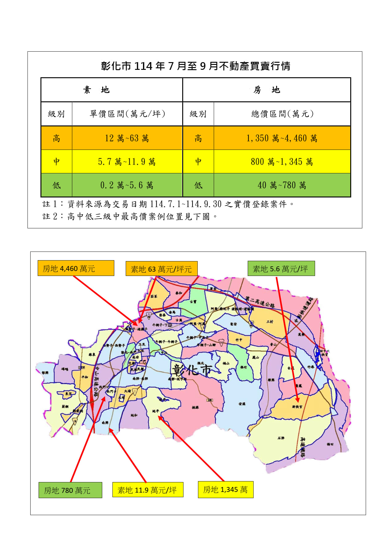 彰化市114年7-9月行情報導