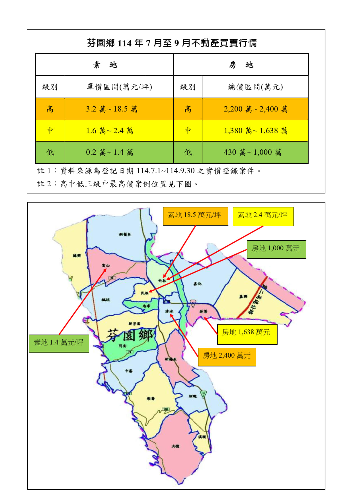 芬園鄉114年7-9月行情報導
