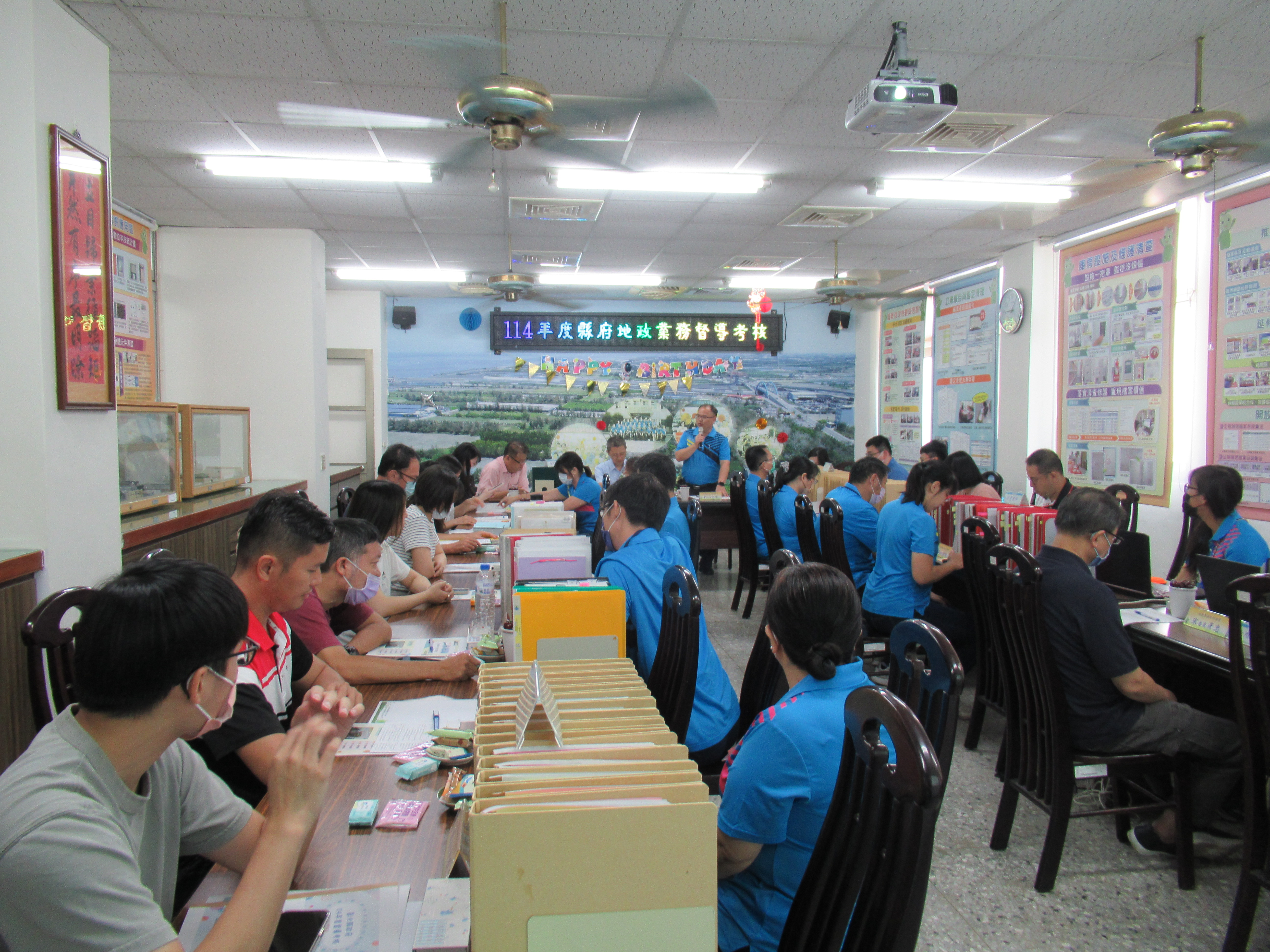 彰化縣政府派員展開本縣8個地政事務所的年度業務考核行程,於8月25日(星期一)上午蒞臨二林地政事務所進行評核作業。該所主任劉志宏率領全體同仁熱忱接待,並以簡報方式沿革與組織編制、各課業務、研究創新等內容,展現一年來推動各項地政工作的努力與成果。