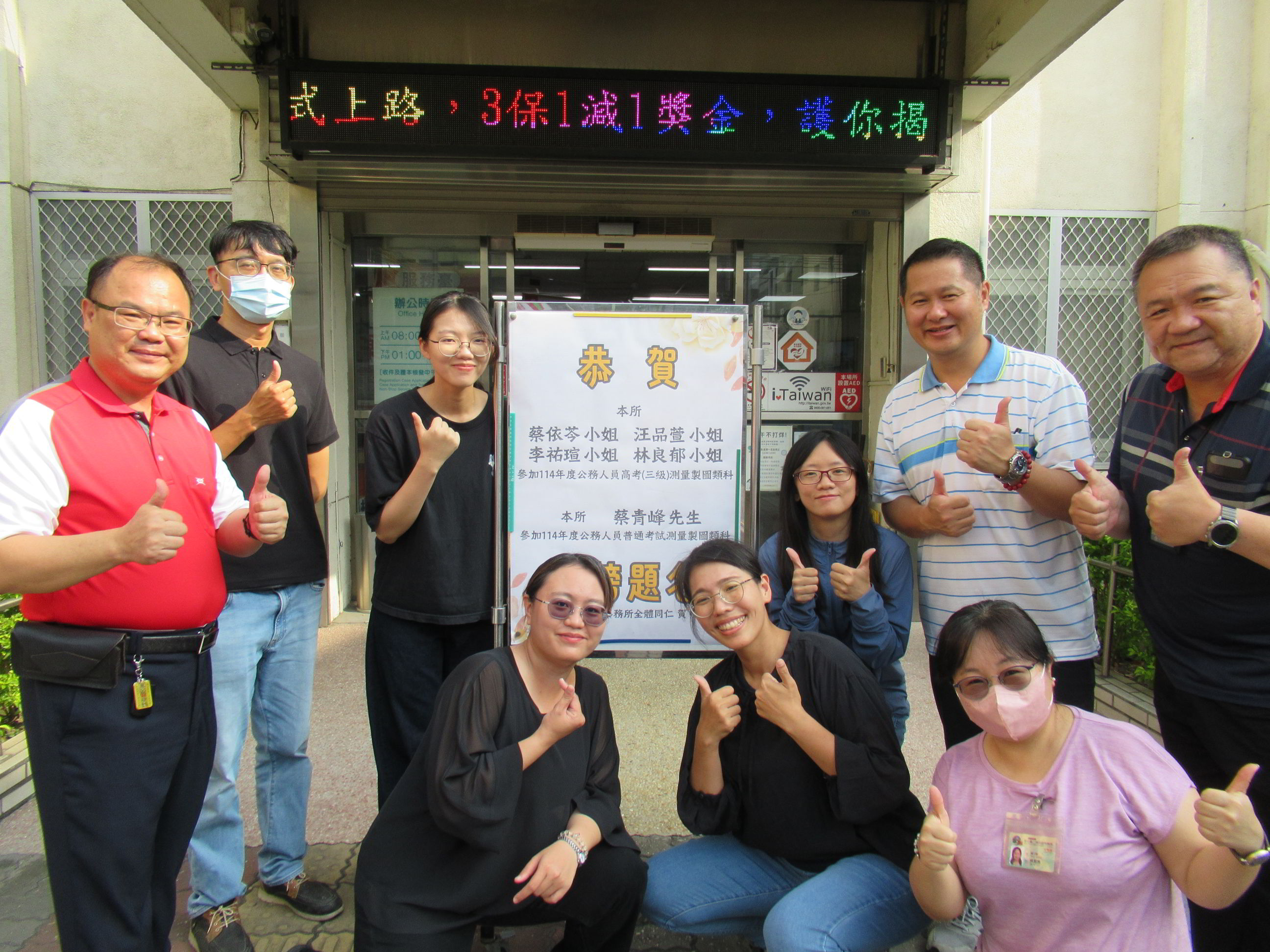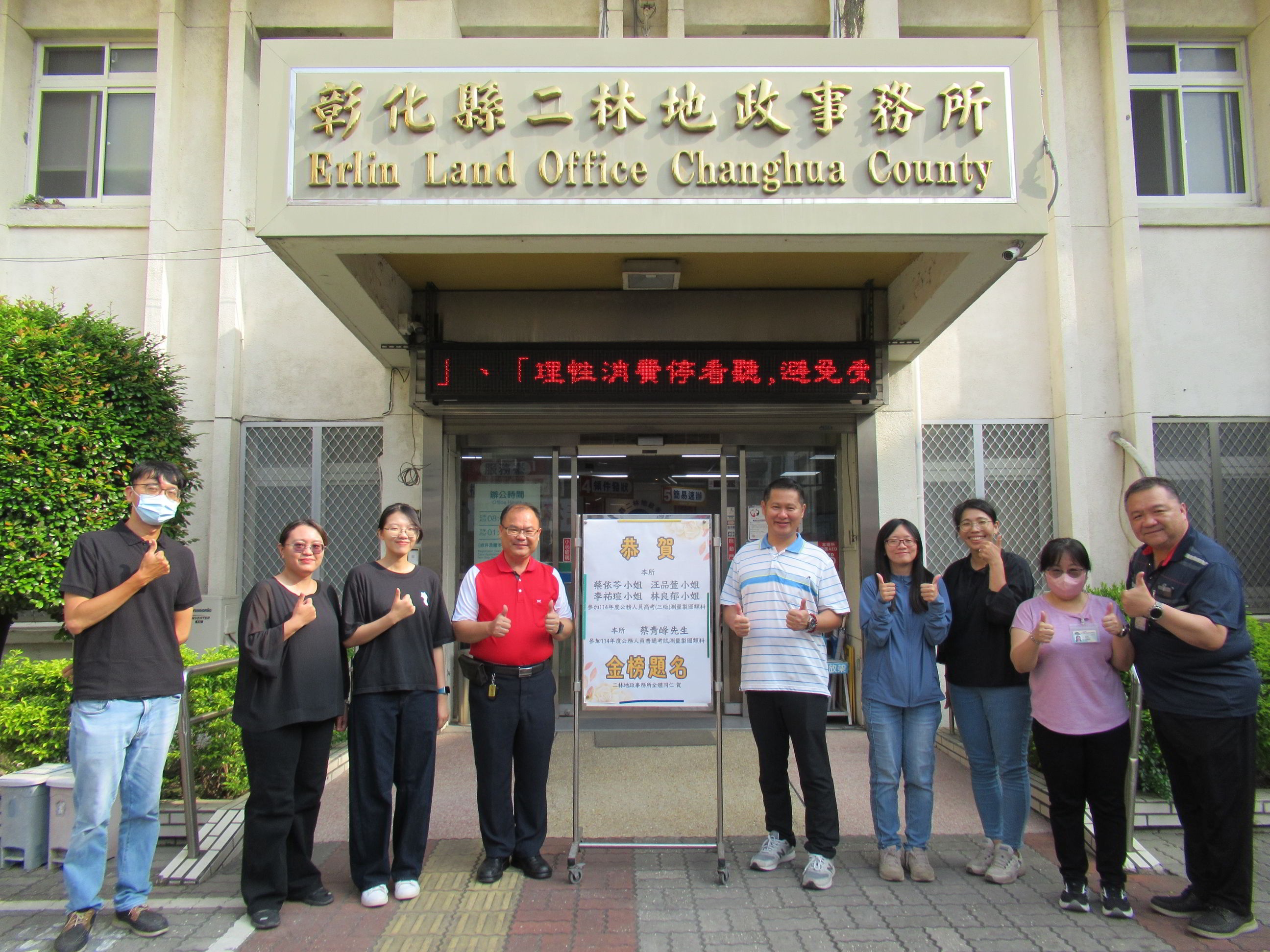 114年度公務人員高等考試三等考試及普通考試於昨(17)日上午放榜,二林地政事務所迎來喜訊,今年度共有五位同仁獲得優異成績!