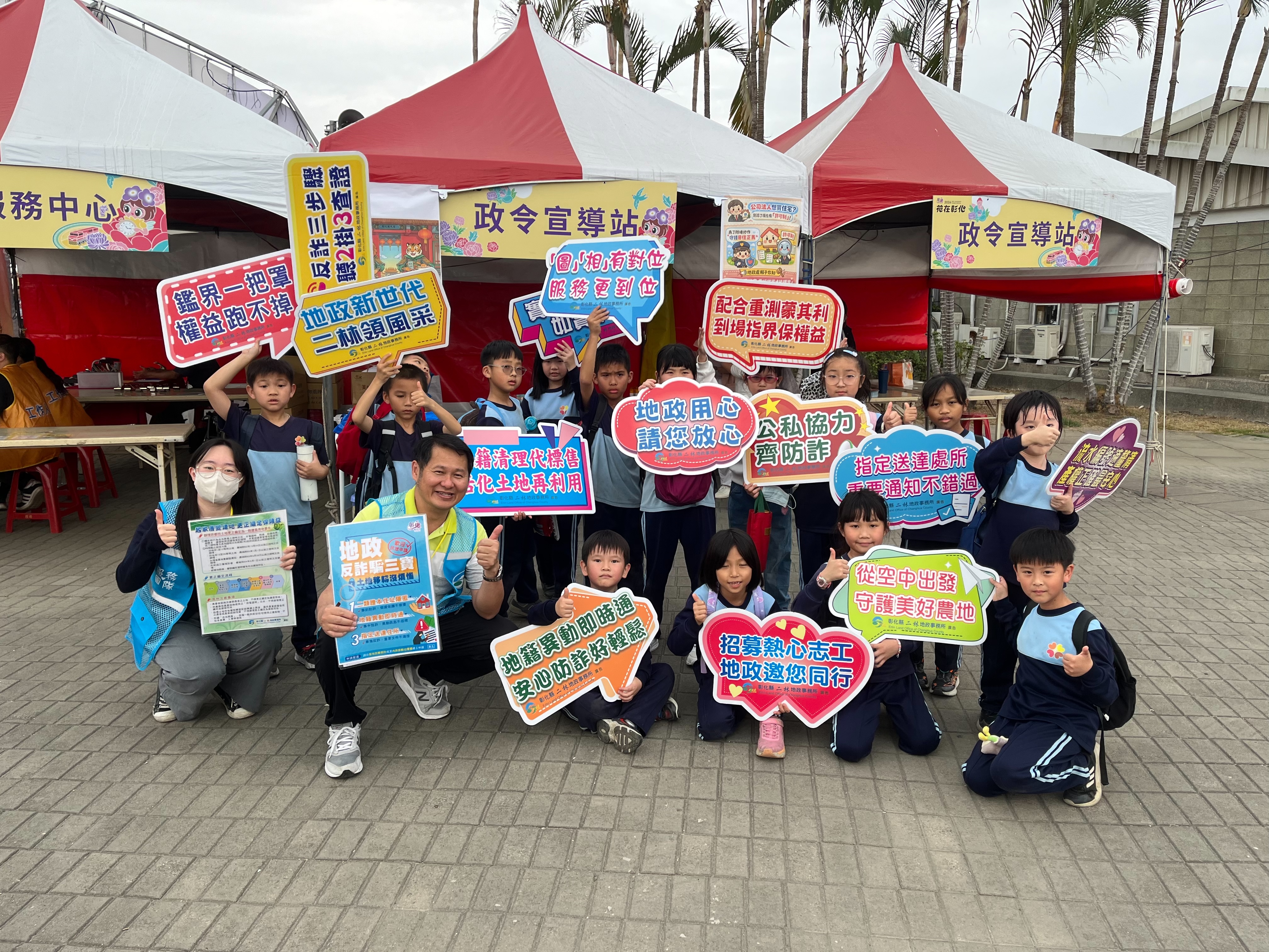 二林地政為便利民眾辦理土地分割作業,於今年開發「O-Land土地分管位置試分割系統」(連結網址:https://landoffice.chcg.gov.tw/erlin/07other/main.aspx?main_id=4088),讓民眾能在線上即時運用正射影像繪製分割方案及試算稅賦,為讓更多民眾知悉地政便民服務特別運用花在彰化之活動辦理宣導,現場互動熱絡,吸引甚多鄉親參加並按讚鼓勵。