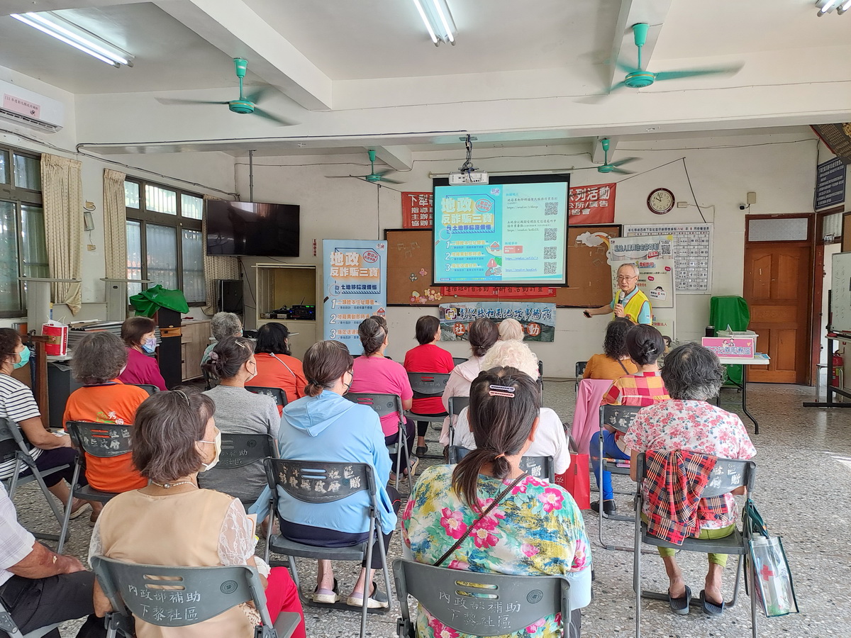 下犁社區發展協會特別於社區年長者團康課程安排時段,讓和美地政事務所服務團隊宣導現行非都市土地管制作為及推廣地政防詐三寶作法,當日約有18位民眾參與,由和美地政事務所服務團隊推廣地政防詐三寶—地籍異動即時通、第二類謄本地址隱匿、指定公文書送達處所,透過家人親友的互相關心來遏阻詐騙,藉由這些措施,以多重保護的方式,協力保障自身產權。另對於現行非都市土地違規使用的態樣予以說明,並說明中央行政、監察單位的處理思維,目前運用衛星影像定期搜查土地變異點的科技執法,地方政府執行層面經驗分享。另介紹和美地政事務所全功能櫃臺與中午服務不打烊的服務內容,讓鄉親可以更方便的洽辦事務。