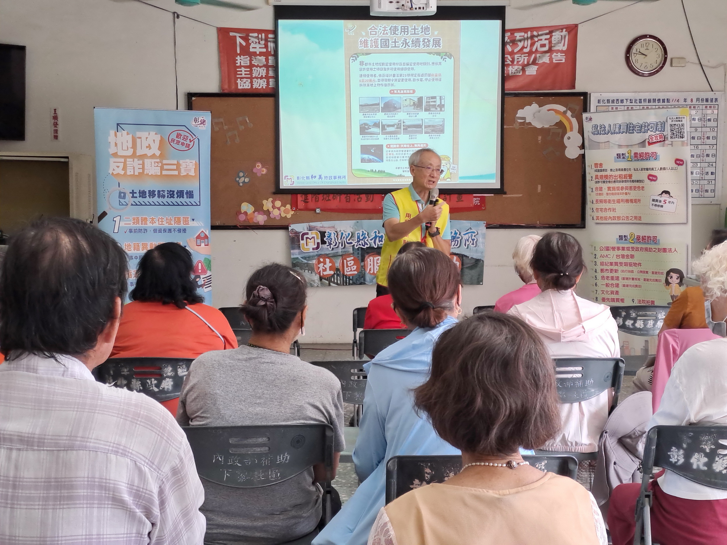 和美地政事務所於114年9月24日上午至彰化縣線西鄉下犁社區活動中心舉辦社區服務及宣導地政業務,推廣防詐地政三寶、宣講非都市土地使用管制之現行作法與行政機關作業思維,並解答在場民眾提問土地使用之疑惑。