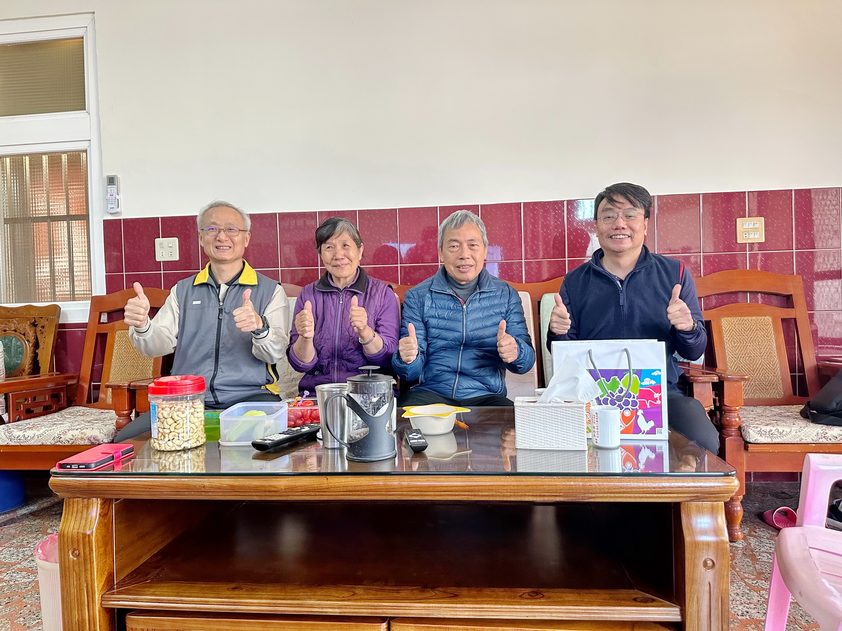 歲末喜迎丙午年新春之際,和美地政王建山主任帶領同仁前往伸港鄉拜訪該所退休3位前輩-林治民先生、薛木水先生及呂上珍小姐。面對老同事造訪,退休前輩相當親切並盛情以待,彼此閒聊退休生活近況,希望透過此行,和美地政同仁與退休前輩的同事情誼能延續不斷。