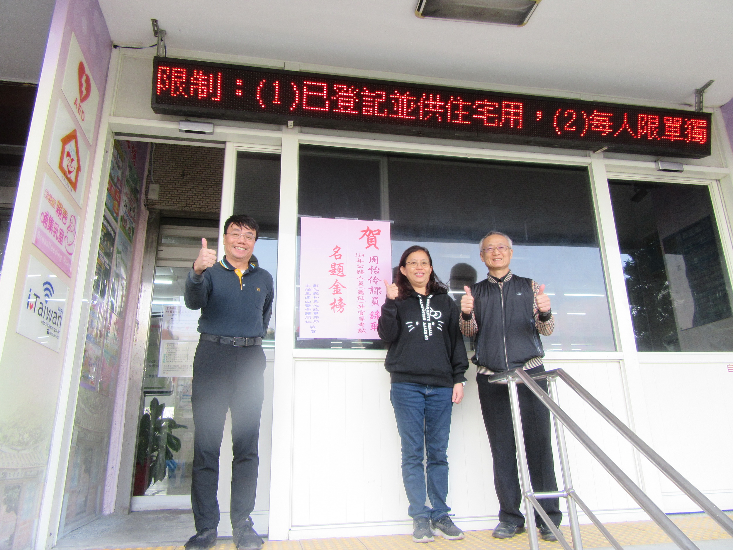 114年公務人員薦任升官等考試日前公告榜示,和美地政周怡伶課員名題金榜,取得升薦任官等資格。在工作繁忙並得兼顧家庭及錄取率僅3成3左右之下,能努力進取榮登金榜,著實相當難得,更值得肯定。