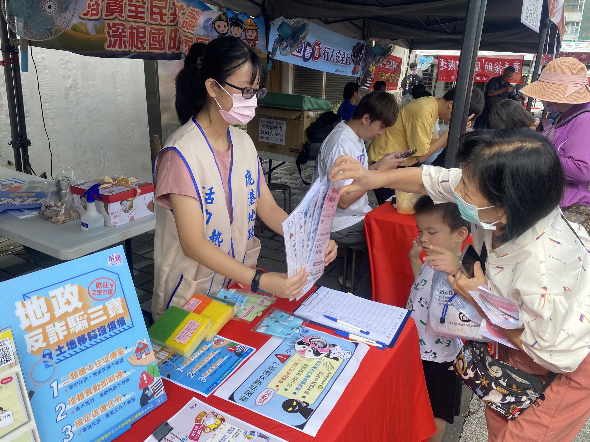 此次宣導內容涵蓋不動產防詐、實價登錄、外人地權、及地籍異動即時通等多項主題,透過地所同仁的解說,協助民眾掌握最新政策資訊,提升財產安全意識。現場並準備豐富文宣與宣導品,讓大家帶回實用的資訊。活動中更設計「防詐小常識問答」的互動遊戲,寓教於樂的方式不僅增添現場熱鬧氛圍,也讓重要的防詐觀念深植人心。
