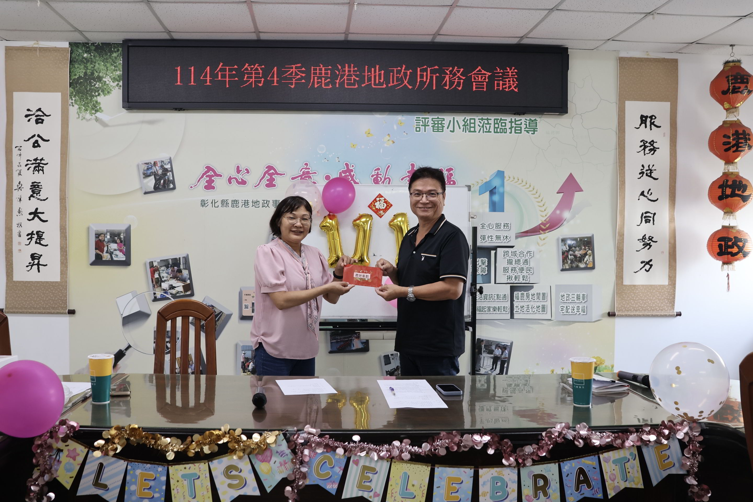 本次會議除報告例行業務、跨課室交流外,也表揚本年度業務評比中表現優異的同仁,鹿港地政在「地籍」及「農地重劃檔案管理」等項目表現亮眼。這份榮耀不僅屬於承辦同仁,更是整個團隊努力的成果,充分展現專業能力與服務品質。此外,本次會議也特別向即將於11月12日退休的同仁王珮玲小姐致上誠摯的祝福。珮玲在本所服務逾25年,深受長官與同仁愛戴。本所感謝她多年來的付出,並祝福她退休後悠閒自得。