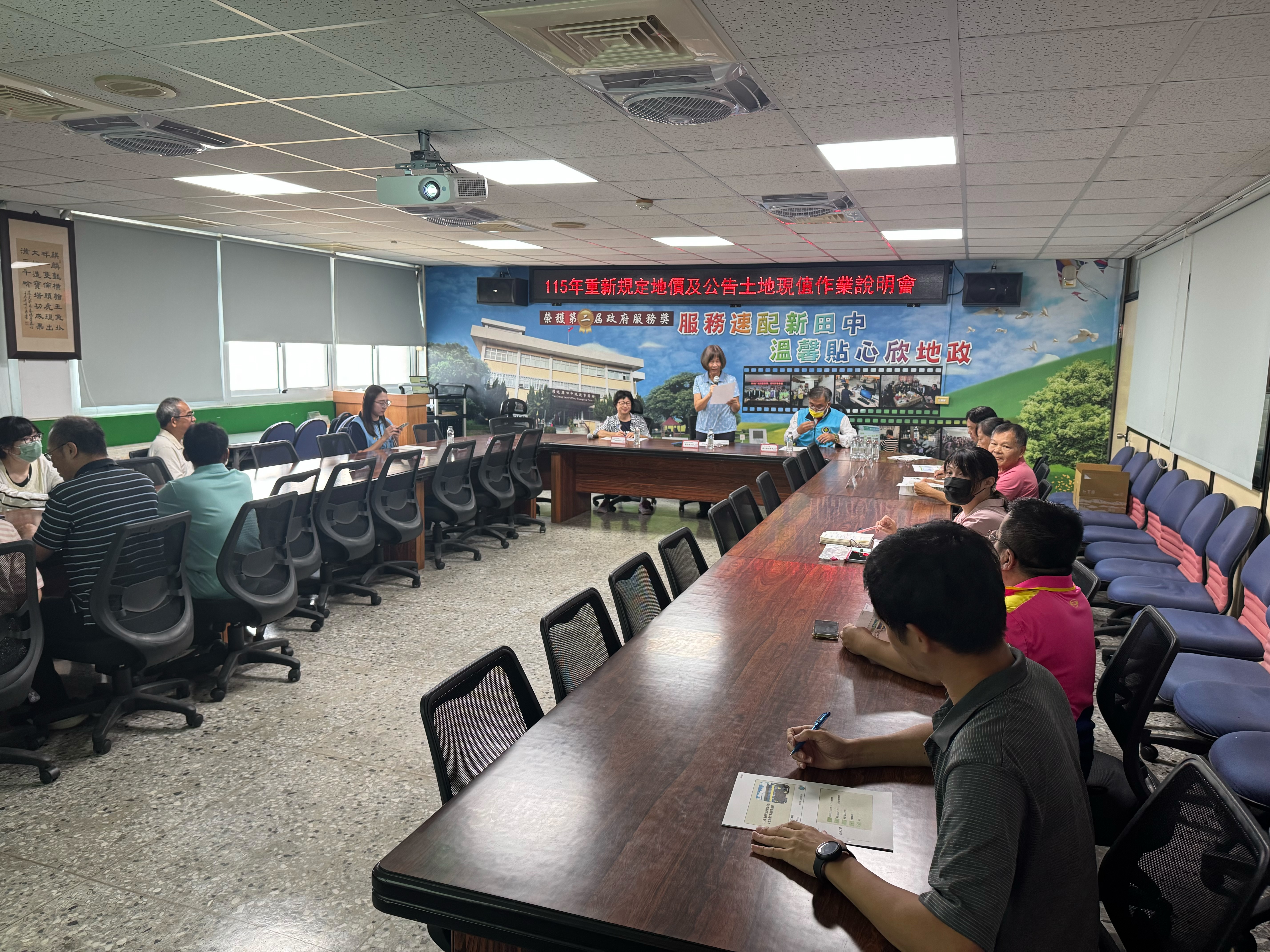為使民眾了解田中鎮、社頭鄉及二水鄉的地價及公告土地現值規定與調整,並傾聽民眾意見,田中地政於10月1日舉辦「115年重新規定地價及公告土地現值作業說明會」,轄區議員詹琬惠及鄭俊雄助理、田中鎮民代表主席曾福傳及代表彭世和、彰化縣地政士公會蔡文鎮理事長及邱銀堆榮譽理事長、縣府地政處白娟華科長、彰化縣地方稅務局員林分局、轄區公所及台灣糖業股份有限公司等人員參與,會場氣氛熱烈。