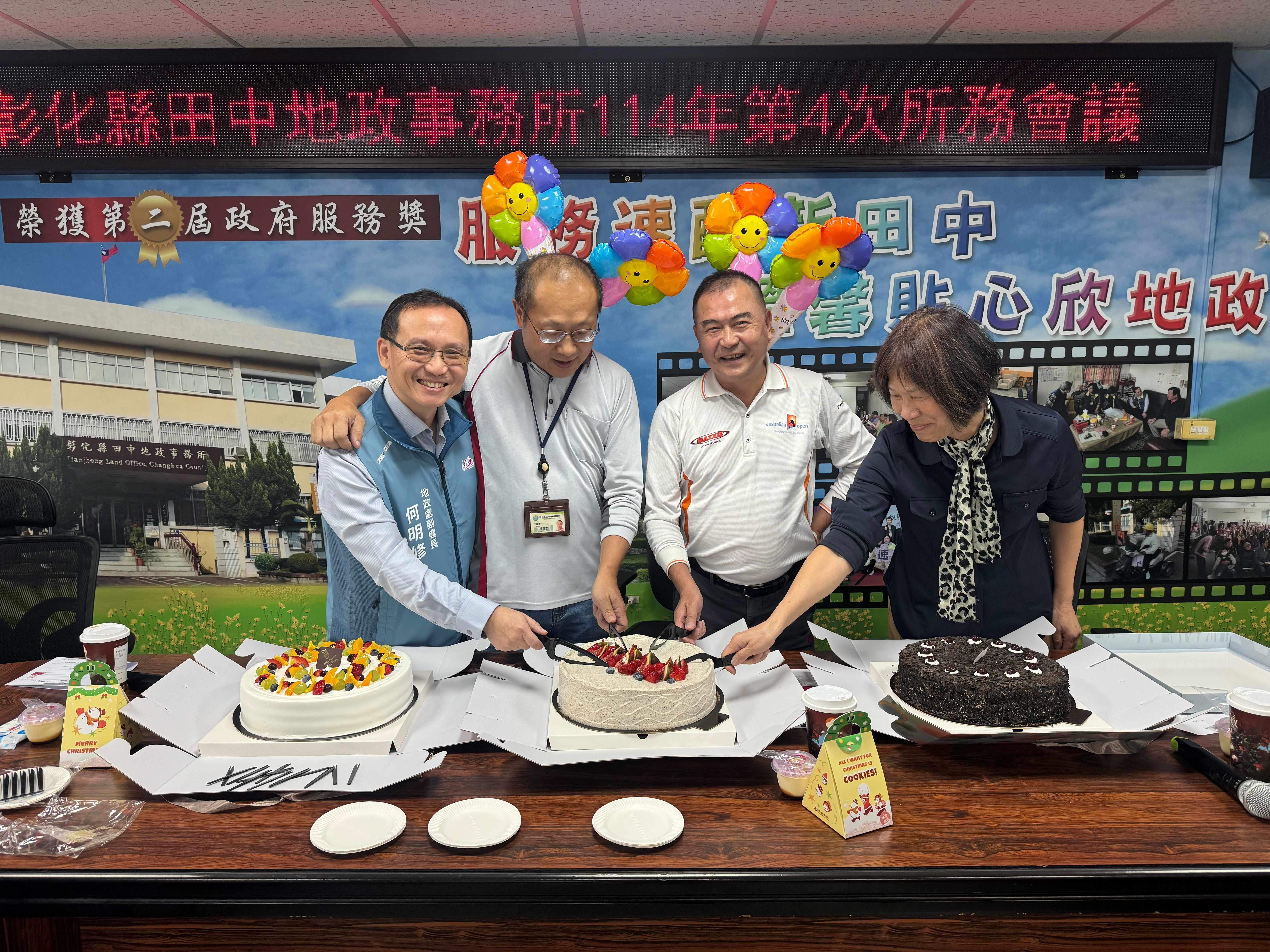 田中地政事務所劉玉株主任表示,透過定期召開所務會議關懷同仁,辦理聚會活動,不僅有助於業務推動與經驗傳承,更能凝聚團隊向心力,未來將持續打造友善、和諧的職場環境,提供民眾更優質、便捷的地政服務。