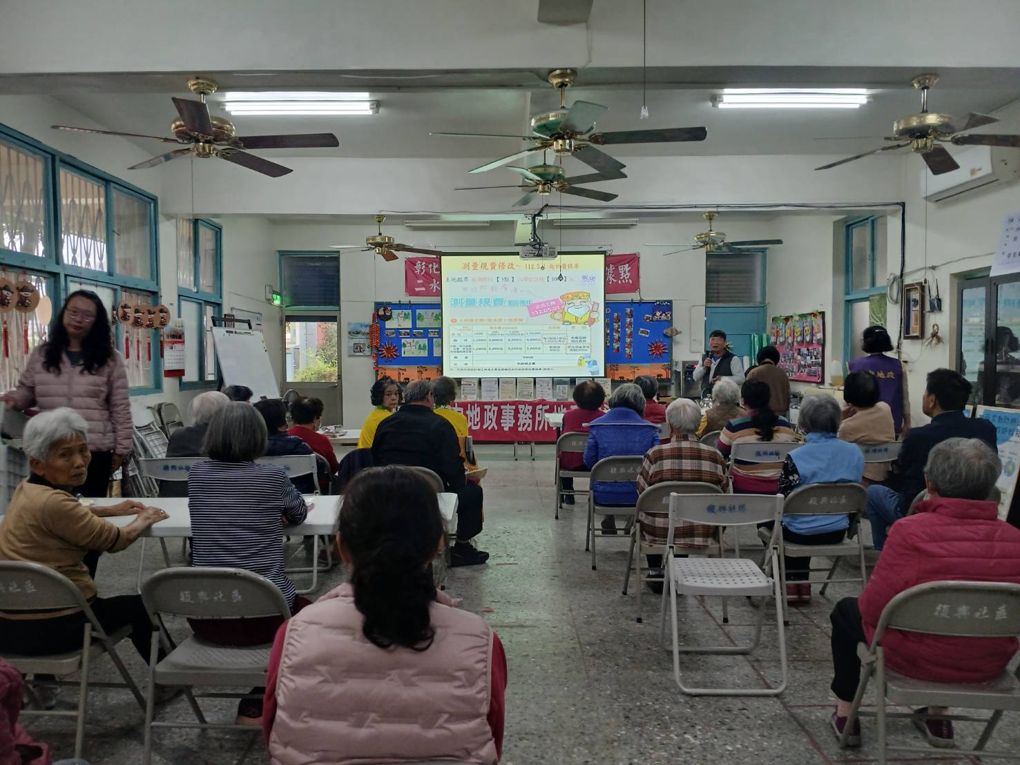 本所為鄉親宣導有關土地測量、登記及防詐騙等業務,其中包括土地鑑界、土地分割等業務的介紹及辦理程序,並對地政詐騙宣導相關問題等作詳細的案例分享,使長輩們更加了解地政相關知識,及預防詐諞集團詐騙方式,其間民眾提出關於自身土地問題,經本所同仁當場解說,民眾感受受益良多,並紛紛陸續提出地政及詐騙相關問題一起討論。