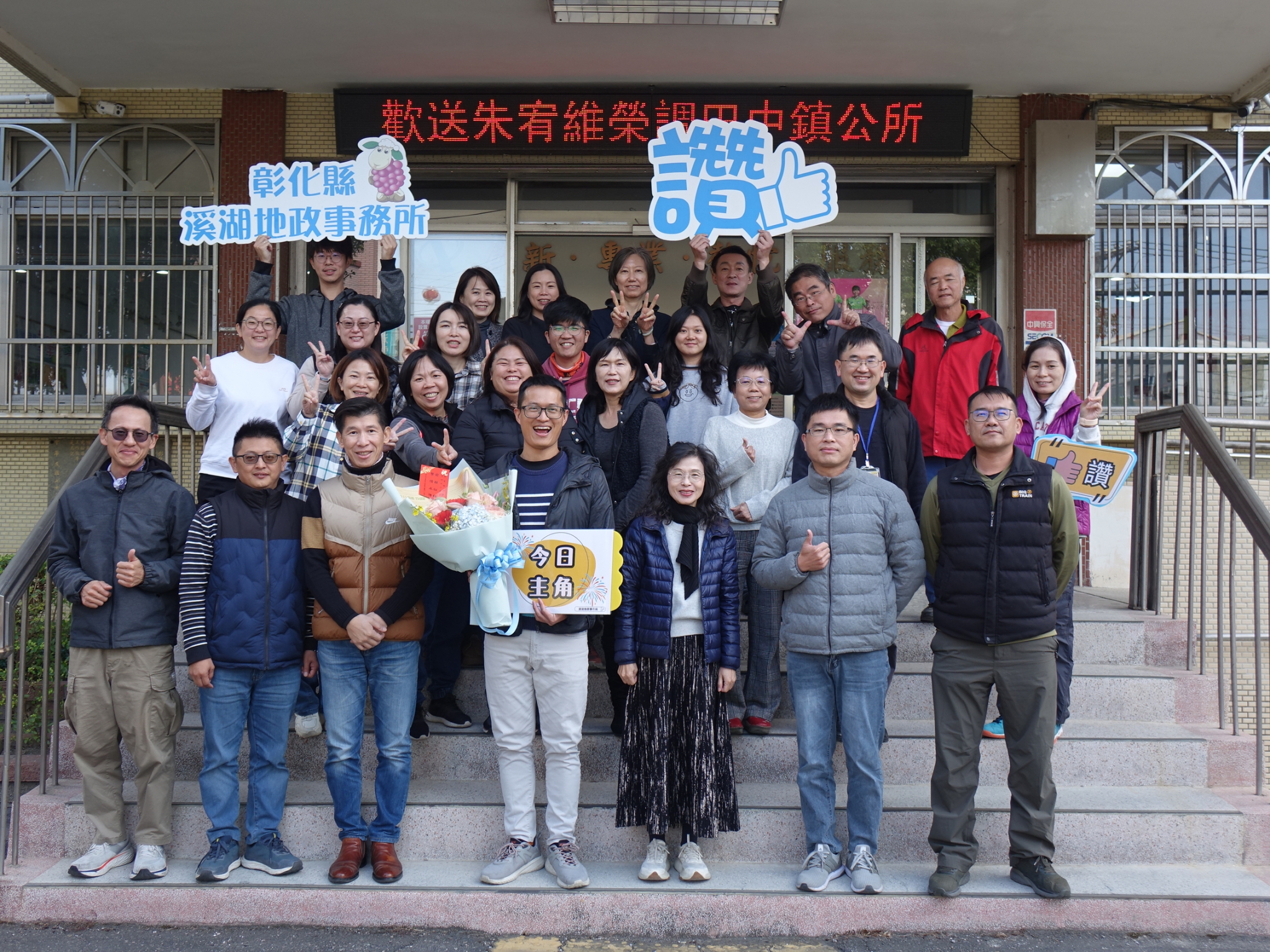 溪湖地政事務所測量員朱宥維先生將於115年1月5日榮調至田中鎮公所報到服務,同仁們懷著不捨與祝福的心情歡送,現場氣氛溫馨感人,大家齊聚一堂,祝賀朱先生於新職場大展宏圖。