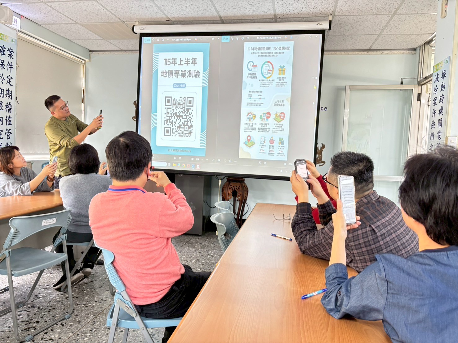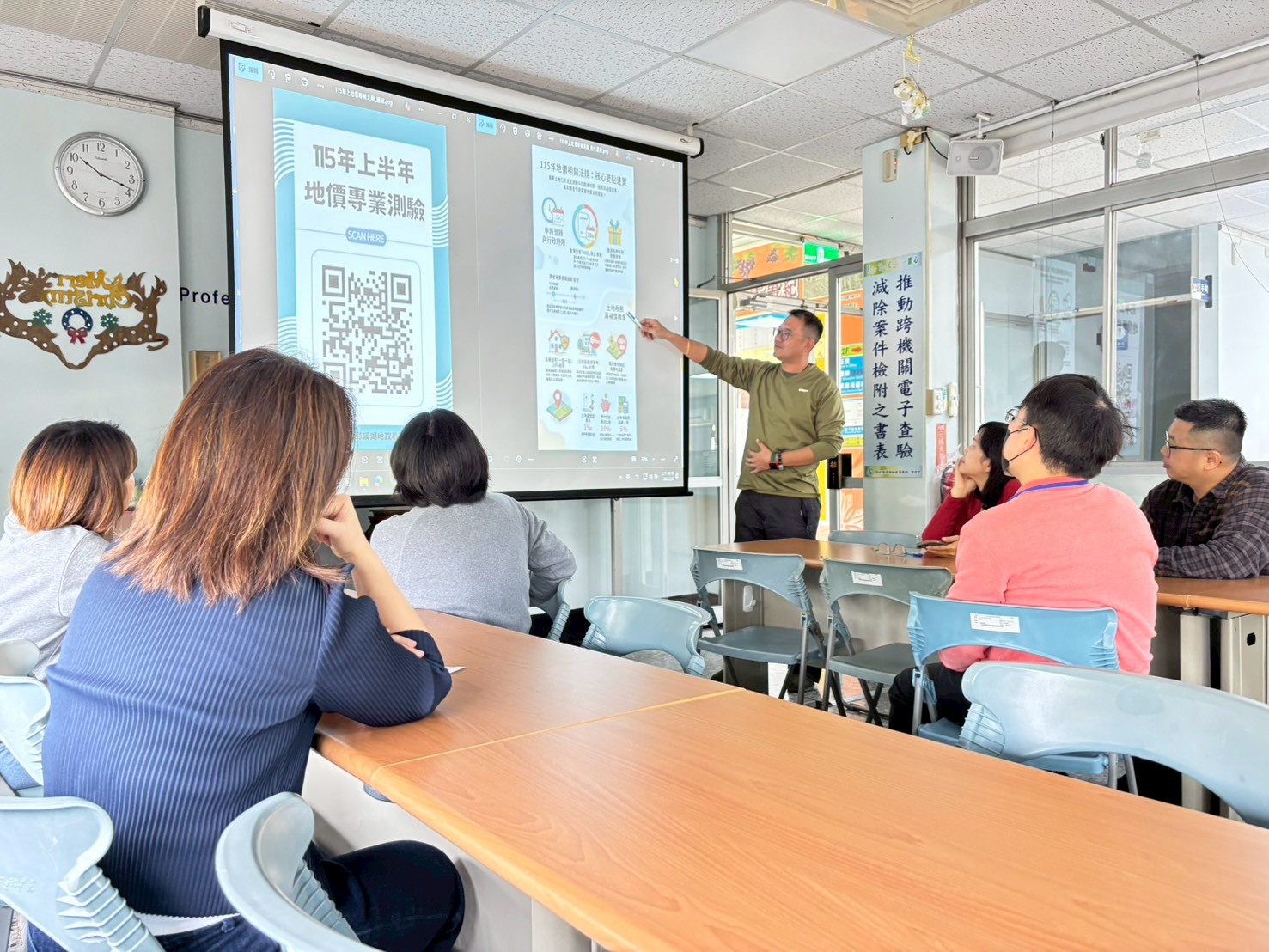 本次地價測驗於考前由地價課課長親自進行考前複習,針對測驗重點與核心觀念加以說明,協助同仁掌握地價業務關鍵法令與實務要點,使學習更具方向性與實效性。透過考前引導,讓同仁在測驗前即能釐清觀念、強化理解。