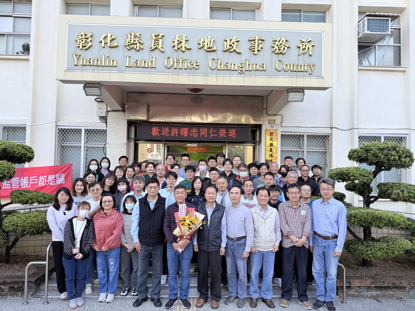 員林地政事務所二課資深測量人員許曙忠先生於115年1月16日屆齡退休,地所特別於1月13日退休前舉辦榮退歡送會,由地政處陳麗梅處長親自到場頒獎致意,並與地所同仁一同獻上祝福贈送紀念品及合影,感謝許曙忠先生多年來在地政機關服務,對測量業務之專業貢獻深受肯定,退休當日地所全體同仁也紛紛獻上祝福與歡送,場面溫馨熱絡。
